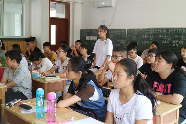 夏日清晨,阳光初照,草坪上露珠闪闪,微风轻抚,迎来了夏令营的第三天,学生们朝气蓬勃,充满期待。 “一日之计在于晨”, 在师生亲切问候中开启了崭新的一天。教室里有着朗朗的读书声,课堂里有着慷慨激昂的讲课声,互相交融,书香满溢。语文课堂气氛活跃,数学课同学们积极思考,英语课上同学们勇于表达,不同学科的语言汇集在一起,编织成了一首动听的歌谣。 语文课上,张老师给同学们讲述古代圣贤看人生的态度,从“朝闻道,夕死可矣”到“修身齐家治国平天下”,让同学们感受古人的鸿鹄之志。又列举圣人事迹,从屈原的“世人皆浊我独清,众人皆醉我独醒”,到司马迁的“人固有一死,或重于泰山,或轻于鸿毛”,再到曹雪芹的“字字看来皆是血,十年辛苦不寻常”,鼓励同学们向古人学习,并告诉他们要树立崇高的人生观。课上,张老师播放了汪峰的歌曲《飞的更高》,“我要飞的更高,飞的更高,狂风一样舞蹈,挣脱怀抱.....”歌声回荡在教室里,在学生哼唱中,仿佛看到了一群追梦少年,迎着风雨奋力奔跑。