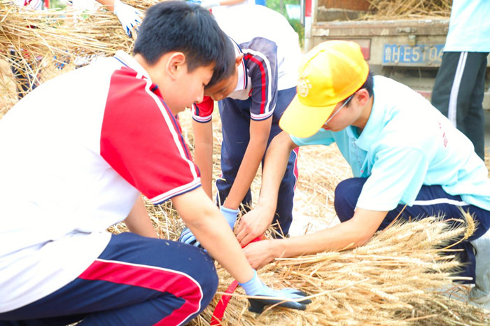 曲阜夫子学校、曲阜九巨龙学校两校联合开展体验农作活动  为更好的体验农耕文化、加强学校交流,6月9日下午,曲阜夫子学校、曲阜九巨龙学校组织两校学生于夫子学校中心花园麦地联合开展体验农作活动。 在中心花园麦地,校领导率先收割小麦,为两校学生做榜样;随后两校集合清点人数,划分收割、捆扎、装车合作小组;带队领导提醒学生注意收割秩序、收割安全。